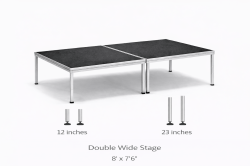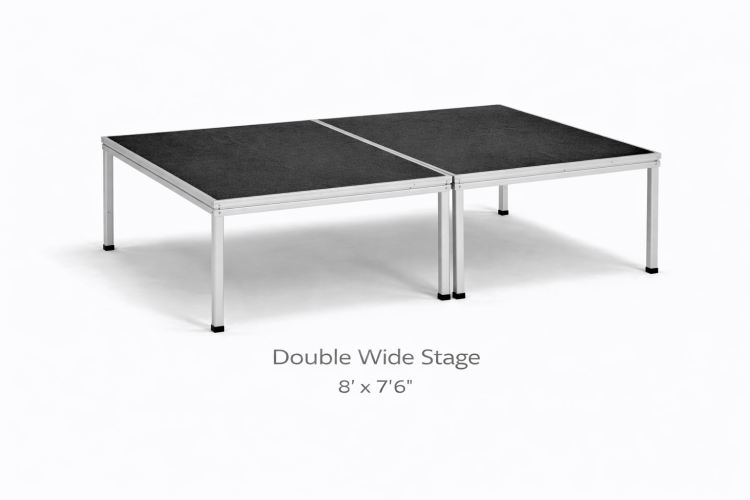 A sturdy, portable event stage platform sized to span 8' x 7'6" and set at a 23" height, this modular stage gives you a reliable, professional surface for presenters, performers, awards ceremonies, or DJ setups. Built from rugged aluminum framing with a non‑slip dark deck, the unit assembles from compatible stage panels and adjustable legs for a level, secure platform. It pairs easily with a 4' x 7'6" panel layout, optional stage skirt for a finished look, guard rail for safety, and modular stairs for convenient access. Because it’s lightweight to transport but engineered for stability, this stage is ideal for indoor or outdoor events where a clean, elevated focal point is needed.