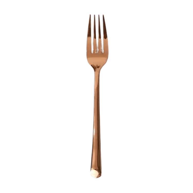 Description: The Copper Dinner Fork is a dazzling piece of cutlery that brings an elegant touch to any dining event. Used for formal dinners, weddings, or upscale parties, this fork combines functionality with style. Its polished copper finish adds a warm shimmer, making it a perfect choice for creating a classy and inviting table setting. Whether for sophisticated gatherings or elevating a meal at home, this rental piece radiates charm and sophistication.