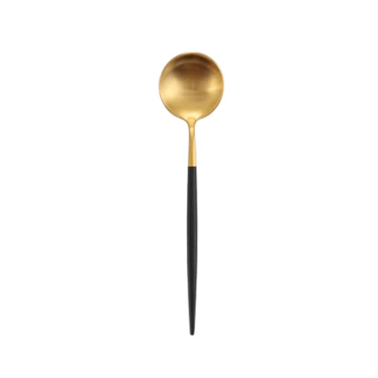 Description: Elevate your event with this Matte Gold and Black Teaspoon—a striking piece that’s far from ordinary. Its sleek, modern design gives any dining setting a refined edge, making even the simplest table a touch more special. All dinnerware rentals are rented in increments of 12.