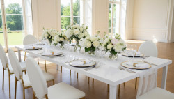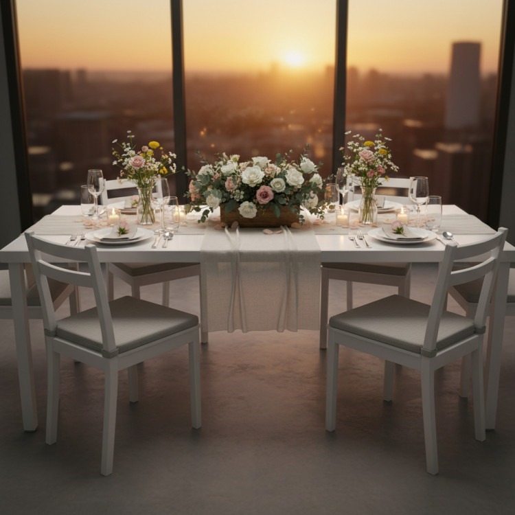 Description: The Apex Dining Table features a clean, modern design with a crisp white frame and square legs, perfect for setting a stylish tone at your event. Its contemporary look and sturdy build make it a versatile choice, whether you're planning an intimate dinner or a lively banquet.