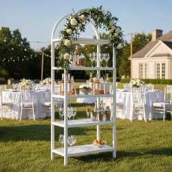 Description: The Cove Bar Back in White offers a sleek, modern backdrop for any event bar setup. Its clean, crisp design not only enhances the overall look but also provides a stable, functional base for organizing drinks and keeping your bar area neat. It's the perfect detail to elevate the ambiance of your next gathering.