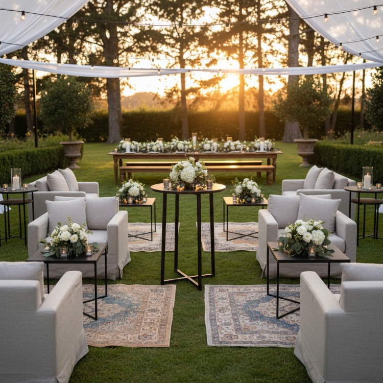 Description: The Kenger End Table is a sleek, modern centerpiece that offers both practicality and style. With its refined design, this table provides a perfect accent for setting drinks, decor, or anything you might need at your event, creating a warm and inviting atmosphere.
