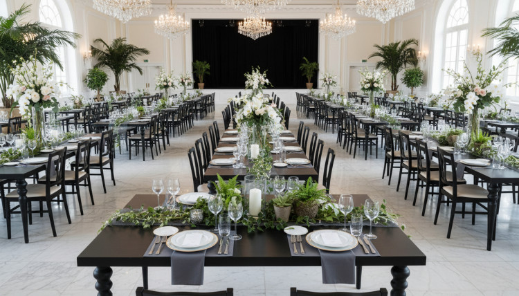 Description: Experience contemporary elegance with the Onyx Dining Table—a striking piece featuring a sleek black frame paired with a bold orb leg. Perfect for setting a modern vibe at any event, this table brings both style and function to your dining space.