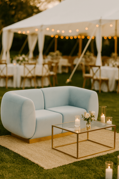 Fresh and calming, the Rain Colette Loveseat features a soft blue tone that instantly brightens any space. With its plush comfort and compact design, it’s a stylish choice for lounges, or events that need a serene focal point.