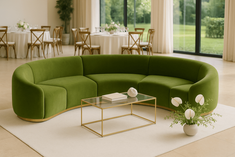 Rich and refined, the moss Cascade Crescent Sofa adds earthy elegance to gatherings and lounges. Its graceful curve and plush cushions create an inviting focal point that pairs modern style with natural warmth.